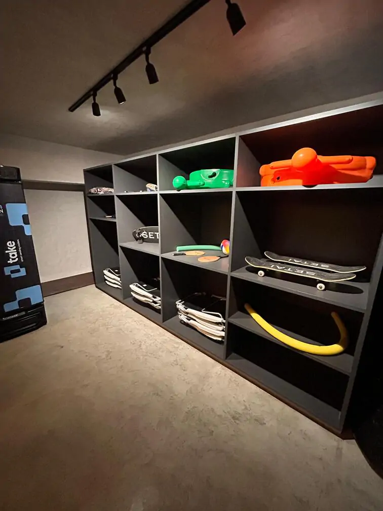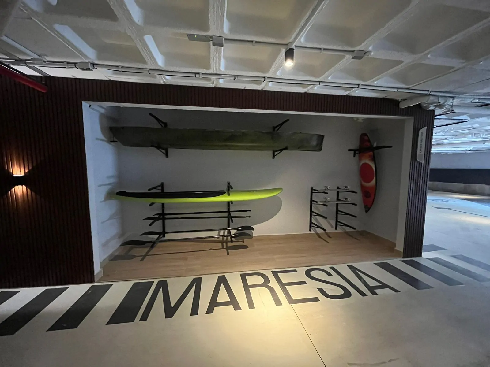 Garderia com kayaks e guarda sol